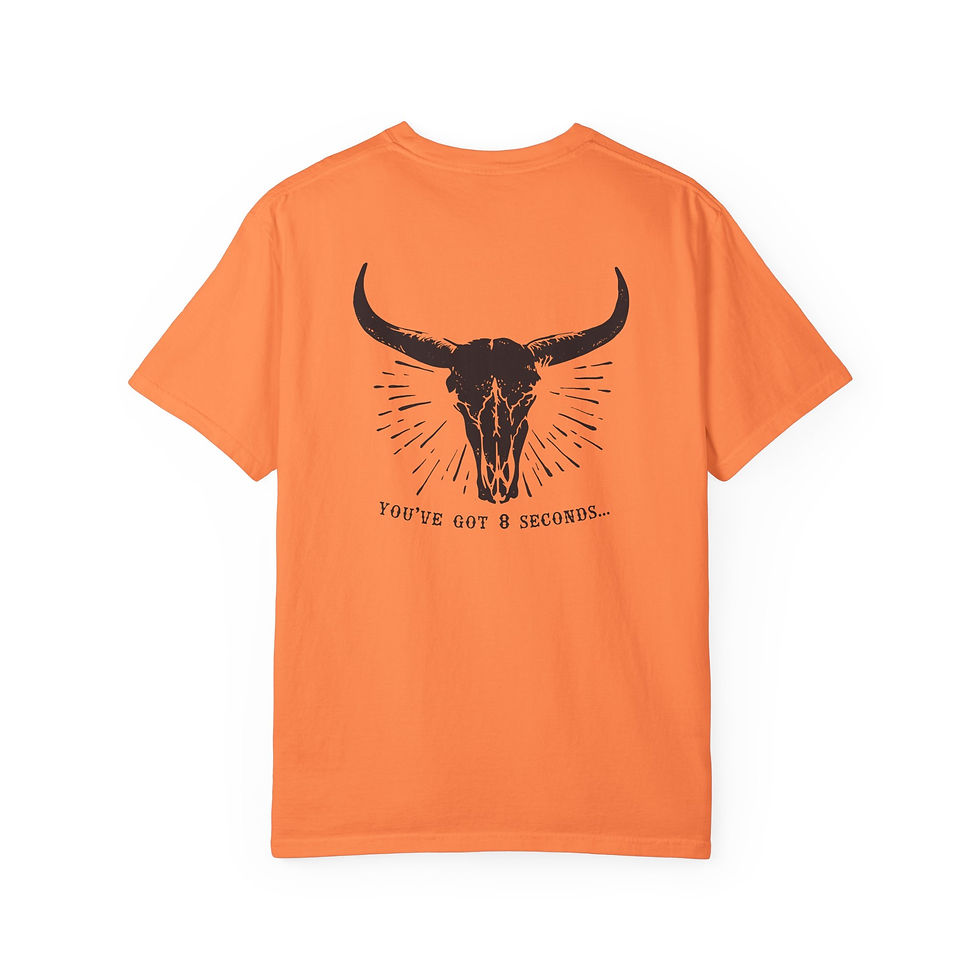 "You've Got 8 Seconds" (On Back) Unisex Garment-Dyed T-shirt (Logo on Front)